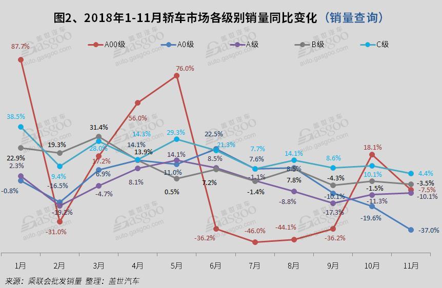 A0级市场同比大幅下滑,A0级车产品新车投放速度慢,到目前为止相对去年同期仅增加了五款全新车型,变化较小,消费者出现审美疲劳,其中销量过万的Polo、赛欧同比也出现较大幅度的下滑,同时消费升级,A级轿车的价格下调,尤其是入门级紧凑型轿车,与小型车相比,在空间及配置上,都要好于小型车,价格上相差却并不大;另一方面小型SUV在一定程度上抢占了A0级轿车市场份额。
