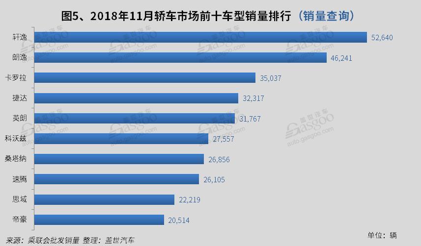 2018年11月国内轿车市场销量分析: 日系逆市上涨 轩逸突破五万