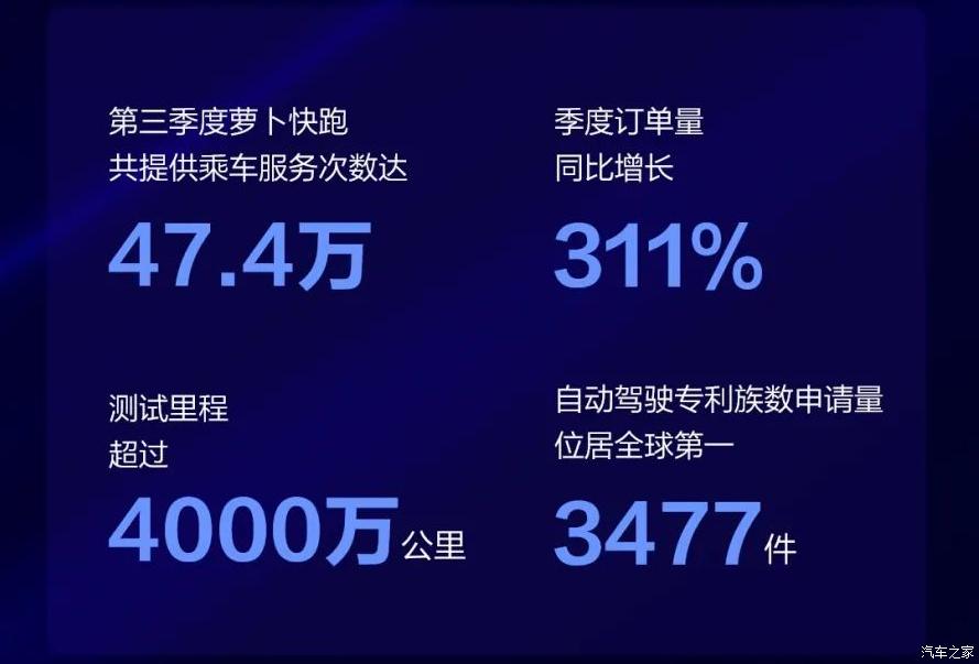 据百度Q3财报数据显示,2022年第三季度萝卜快跑订单量超过47.4万,同比增幅高达311%,环比增幅高达65%。其中,武汉重庆两地的全无人自动驾驶订单量增长迅速;此外,在北上广三个一线城市,平均单车日订单量15次以上,逼近传统网约车服务的日均订单量。