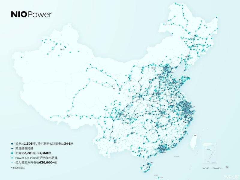蔚来第二代换电站可实现车辆自动泊入,用户无需下车,即可在车内一键启动自助换电,换电过程仅需3分钟。截至12月31日,68.81%的蔚来用户的住所或办公地点,距离蔚来换电站在3公里以内。目前,蔚来在中国市场已累计建成换电站1305座(其中高速公路换电站346座)、充电站2281座(充电桩13368根),接入第三方充电桩超63万根。此外,据官方表示,2023年,蔚来在中国市场将累计建成换电站超1700座,充电桩超20000根。NIO Power “可充可换可升级”的能源服务体系,为用户提供全场景的加电服务,努力实现“让加电比加油更方便”的愿景。