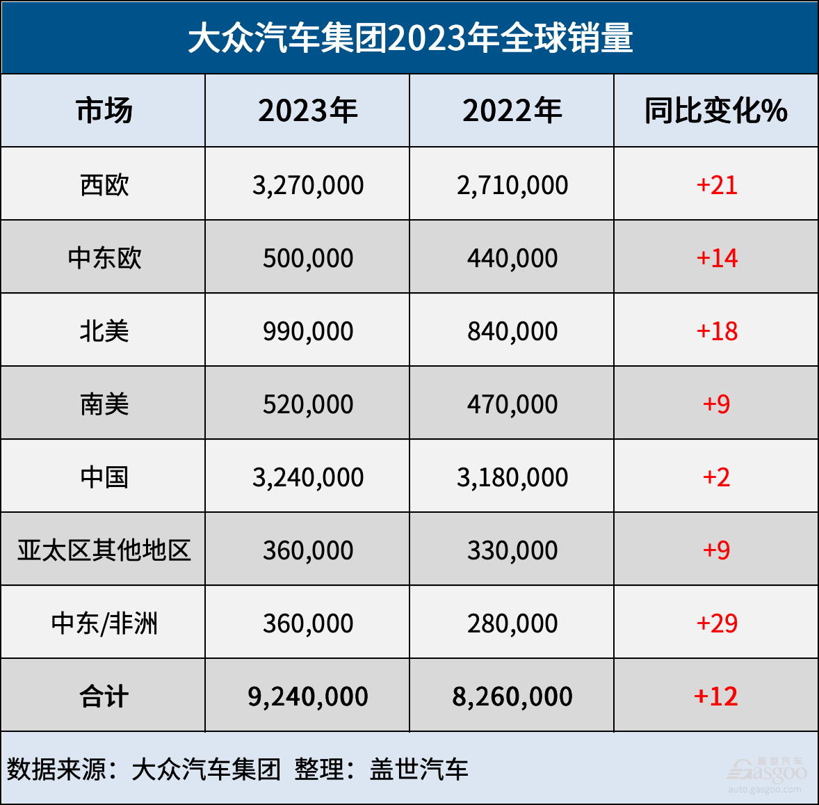 2023年,大众汽车集团在全球的交付量同比增长12%,达到924万辆,表明随着供应链瓶颈的缓解,该集团的销量逐渐向着新冠疫情前的水平复苏。