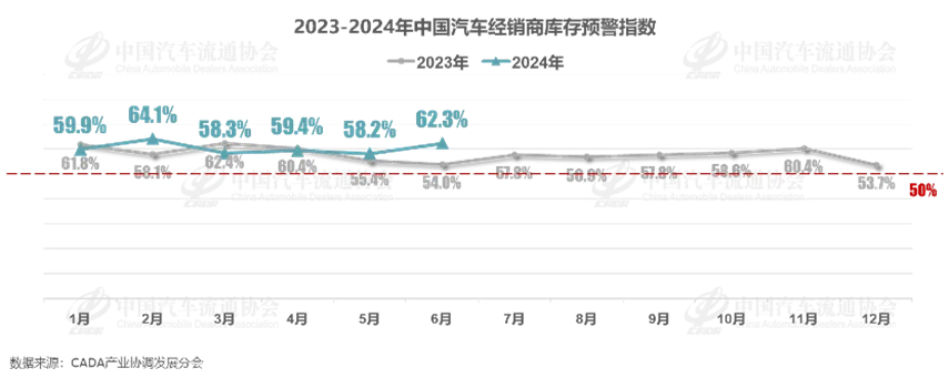 但从6月30日,中国汽车流通协会发布最新“中国汽车经销商库存预警指数调查”看,今年刚过半,指数已来到今年第2高点,仅次于受春节假期影响的2月(64.1%)。这一指数反映全国汽车经销商库存状况的重要指数,意味着经销商库存积压严重,销量不及预期。