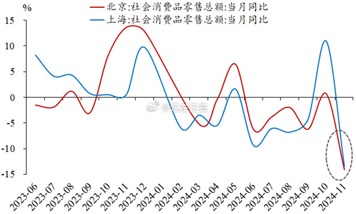 从下图中也可以看到,北京、上海,这两座国内top2的超一线城市的数据,更能够反映当下国内需求萎缩和消费降级的真实态势。