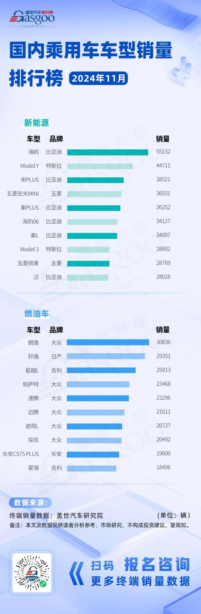 近日,盖世汽车研究院整理发布了“2024年11月国内乘用车车型销量排行榜”。